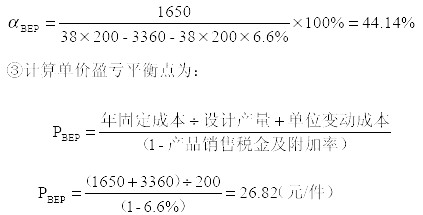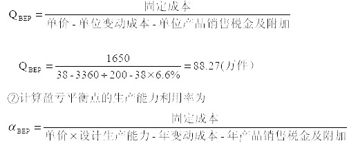 (2)計(jì)算項(xiàng)目的產(chǎn)量盈虧平衡點(diǎn)和項(xiàng)目的單價(jià)盈虧平衡點(diǎn)為