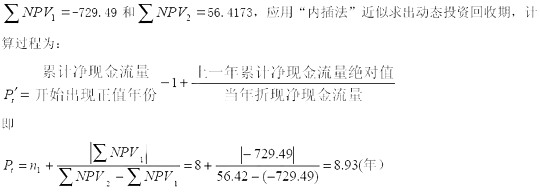 NPV1-729.49和NPV256.4173,應用"內插法"近似求出動態投資回收期,計算過程為: