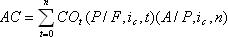 當方案所產生的效益無法或很難用貨幣直接計量時,可以用年費用(AC)替代凈年值(NAV)進行評價。這是通過計算各備選方案的等額年費用(AC),然后進行對比,以等額年費用(AC)最低者為最佳方案。其表達式為: