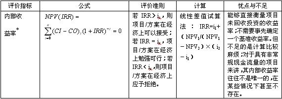 在項目計算期內,由于項目始終處于“償付”未被收回的投資的狀況,內部收益率指標正是項目占用的尚未回收資金的獲利能力。它能反映項目自身的盈利能力,其值越高,方案的經濟性越好。