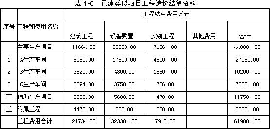 某企業擬興建一項工業生產項目。同行業同規模的已建類似項目工程造價結算資料見表1-6。