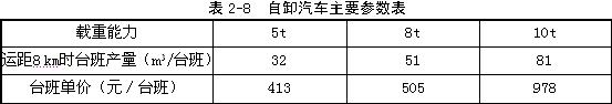 或挖掘機與自卸汽車臺數比例為558/51=10.94,所需配備8t自卸汽車臺數為2×10.94