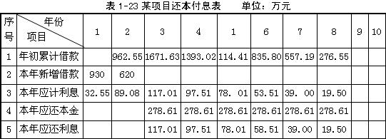 (2)編制項目還本付息表(將計算結果填入表1-8)。