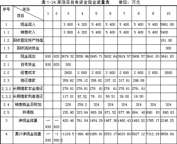 (4)編制項目現金流量表(將現金流量有關數據填人表1-9)。
