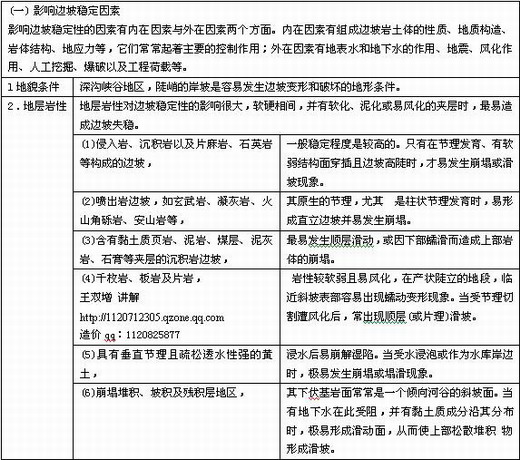 分析:影響邊坡穩定性的因素有內在因素與外在因素兩個方面。內在因素有組成邊坡巖土體的性質、地質構造、巖體結構、地應力等,它們常常起著主要的控制作用;外在因素有地表水和 地下水的作用地震、風化作用、人工挖掘、爆破以及工程荷載等。