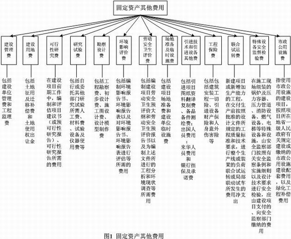 固定資產(chǎn)其他費用共13項,如圖1所示: