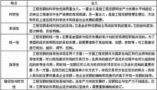 表2-1-2工程定額的特點及含義