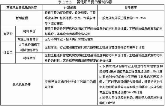 3)其他項(xiàng)目費(fèi)的編制要求:見表5-2-5