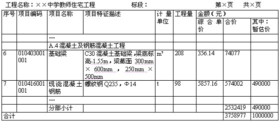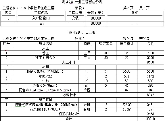 1)暫列金額應按照其他項目清單中列出的金額填寫,不得變動(如表4.2.6所示)。