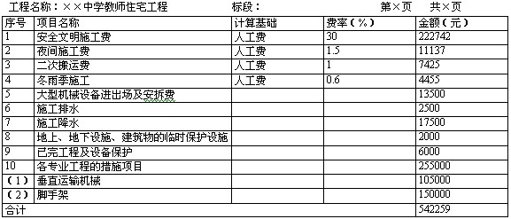 (2)措施項目清單與計價表的編制。 計算時應遵循以下原則: