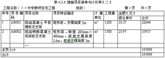 2)措施項目清單計價應根據擬建工程的施工組織設計,可以計算工程量適宜采用分部分項工程量清單方式的措施項目應采用綜合單價計價;其余的措施項目可以“項”為單位的方式計價,應包括除規費、稅金外的全部費用。