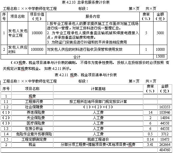 4)總承包服務費,根據服務內容自主確定(如表4.2.10所示)。