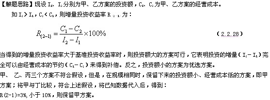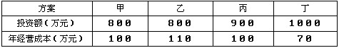 13.某項目有甲、 乙、丙、丁4個可行方案,投資額和年經營成本見下表.