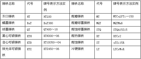 注:本表摘自現行國家標準《鑄鐵牌號表示方法》GB/T5612.