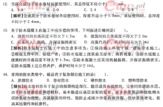- 2024年一級造價師《土建計量》考試真題及答案31-40題2024-10-23