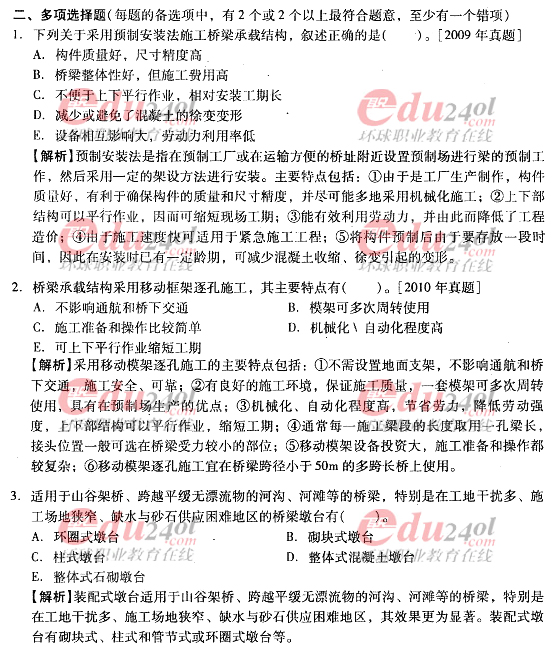 2012年造價工程師《技術與計量》(土建)過關必做試題及答案(9)