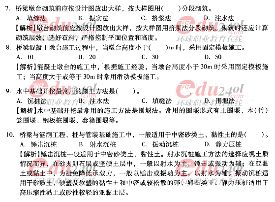 2012年造價工程師《技術與計量》(土建)過關必做試題及答案(7)