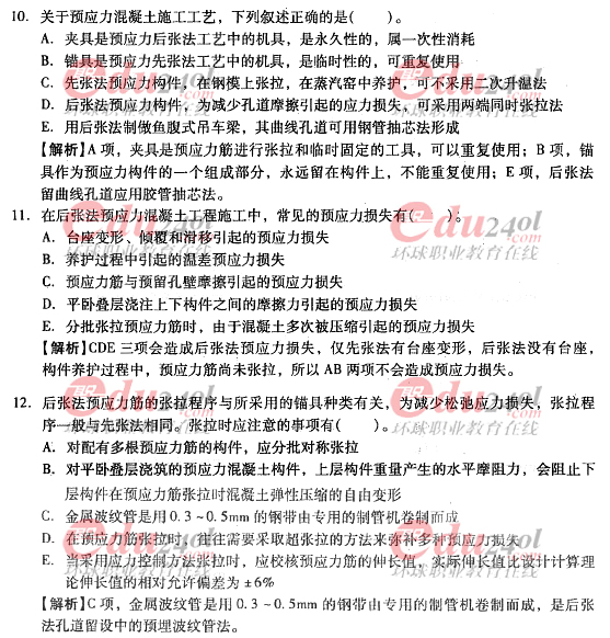 2012年造價(jià)工程師《技術(shù)與計(jì)量》(土建)過關(guān)必做試題及答案(3)