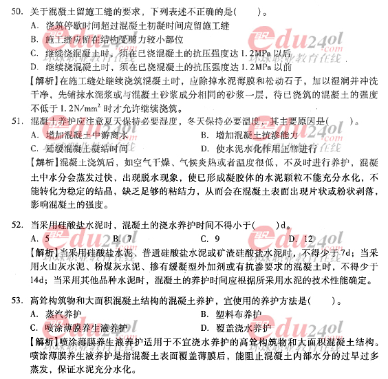 - 2024年一級造價師《土建計量》考試真題及答案31-40題2024-10-23