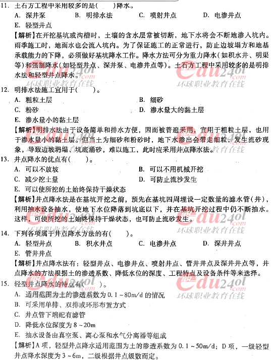 摘要 2012年造價工程師《技術與計量》(土建)過關必做試題及答案(八)主要內容為第四章:工程施工技術,第一節:土石方工程施工單項選擇題、多項選擇題以及答案解析。