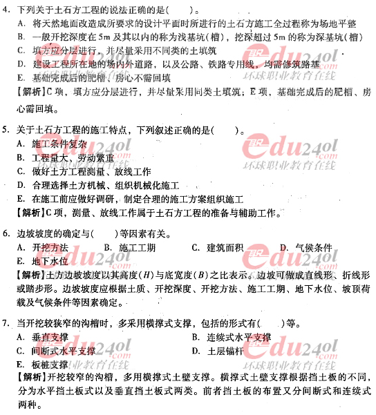 摘要 2012年造價工程師《技術與計量》(土建)過關必做試題及答案(八)主要內容為第四章:工程施工技術,第一節:土石方工程施工單項選擇題、多項選擇題以及答案解析。