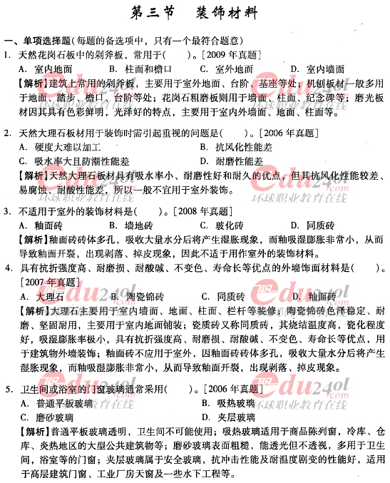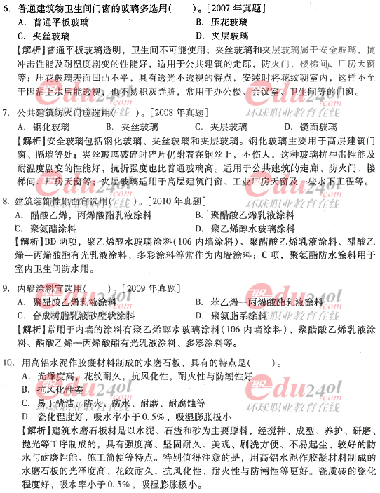 摘要 2012年造價工程師《技術(shù)與計量》(土建)過關(guān)必做試題及答案(七)主要內(nèi)容為第三章工程材料,第三節(jié):裝飾材料;第四節(jié):防水材料,單項(xiàng)選擇題、多項(xiàng)選擇題以及答案解析。