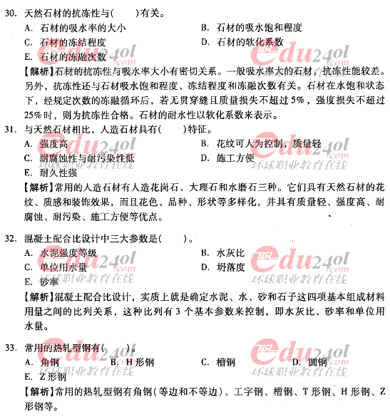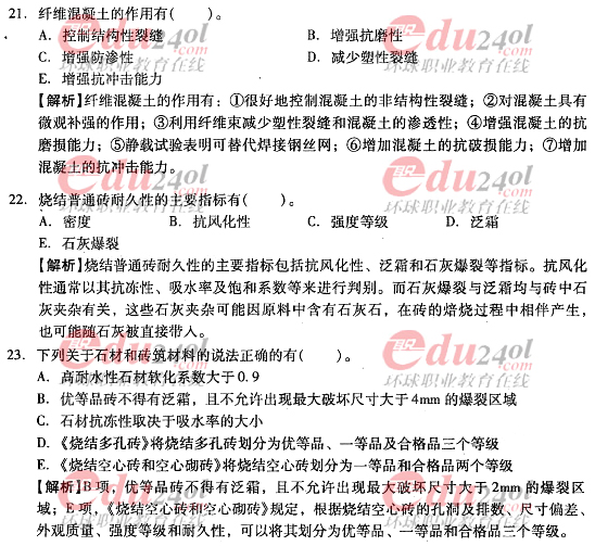 摘要 2012年造價工程師《技術與計量》(土建)過關必做試題及答案(六)主要內容為第三章工程材料,第二節結構材料單項選擇題、多項選擇題以及答案解析。