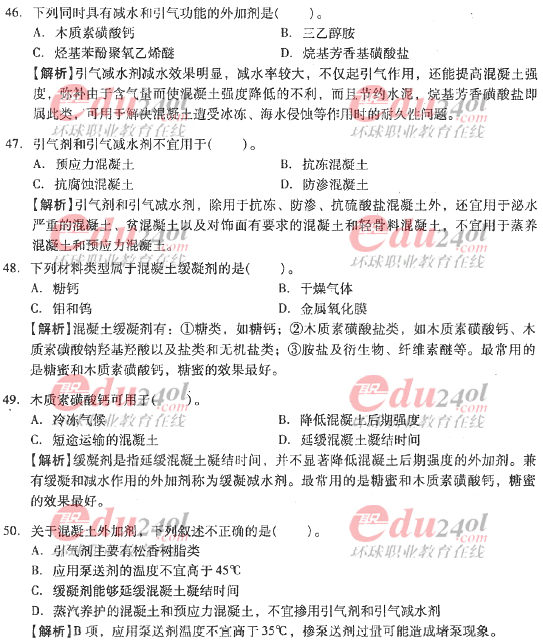 摘要 2012年造價工程師《技術與計量》(土建)過關必做試題及答案(六)主要內容為第三章工程材料,第二節結構材料單項選擇題、多項選擇題以及答案解析。