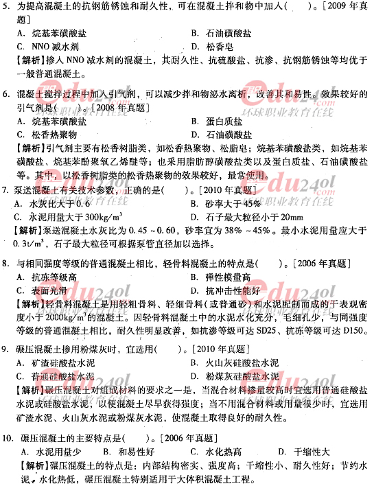 摘要 2012年造價(jià)工程師《技術(shù)與計(jì)量》(土建)過(guò)關(guān)必做試題及答案(六)主要內(nèi)容為第三章工程材料,第二節(jié)結(jié)構(gòu)材料單項(xiàng)選擇題、多項(xiàng)選擇題以及答案解析。