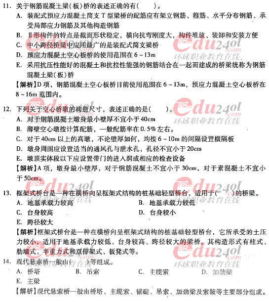 摘要 2012年造價(jià)工程師《技術(shù)與計(jì)量》(土建)過關(guān)必做試題及答案(四)主要內(nèi)容為第二章工程構(gòu)造第三節(jié)橋梁與涵洞工程;第四節(jié)地下工程單項(xiàng)選擇題、多項(xiàng)選擇題以及答案解析。