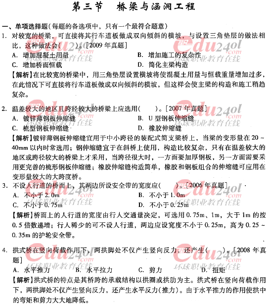 摘要 2012年造價工程師《技術與計量》(土建)過關必做試題及答案(四)主要內容為第二章工程構造第三節橋梁與涵洞工程;第四節地下工程單項選擇題、多項選擇題以及答案解析。
