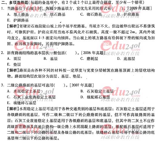 摘要 2012年造價工程師《技術與計量》(土建)過關必做試題及答案(三)主要內容為第二章工程構造第二節道路工程單項選擇題、多項選擇題以及答案解析。