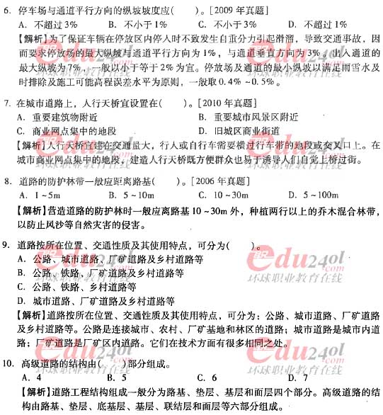 摘要 2012年造價工程師《技術與計量》(土建)過關必做試題及答案(三)主要內容為第二章工程構造第二節道路工程單項選擇題、多項選擇題以及答案解析。