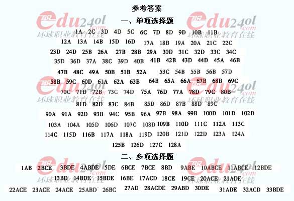 2012年造價(jià)工程師《技術(shù)與計(jì)量》(土建)過關(guān)必做試題參考答案