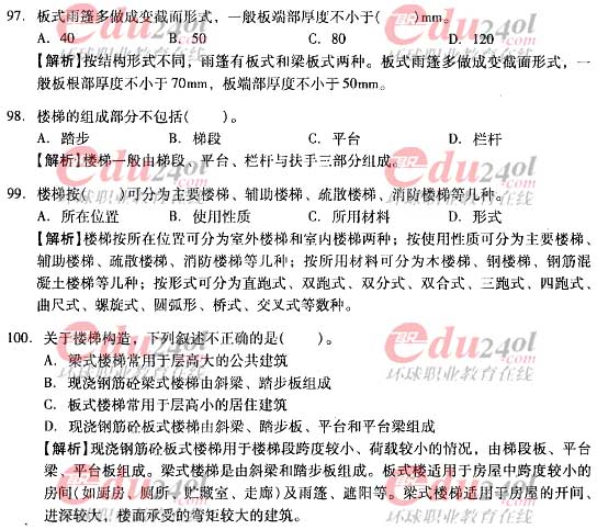 2012年造價工程師《技術與計量》(土建)過關必做試題及答案(10)