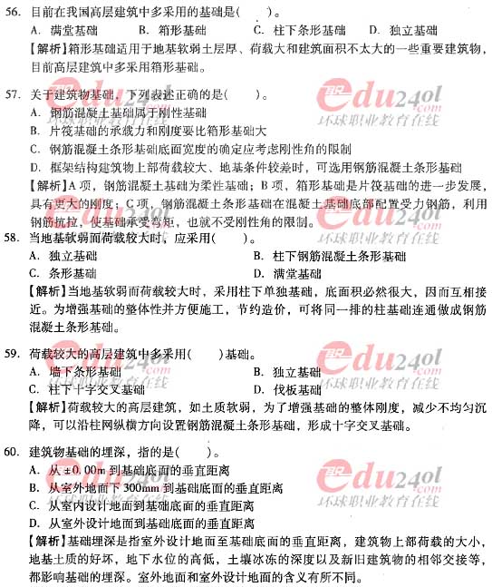 2012年造價工程師《技術與計量》(土建)過關必做試題及答案(6)