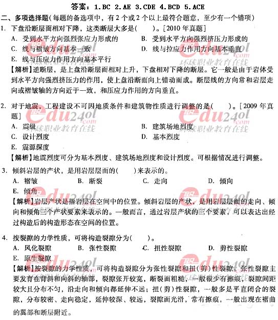 摘要 2012年造價工程師《技術與計量》(土建)過關必做試題及答案(一)主要內容為第一章工程地質第一節工程地址對建設工程的影響;第二節地質巖性;第三節地質構造;第四節巖體特征單項選擇題、多項選擇題以及答案解析。