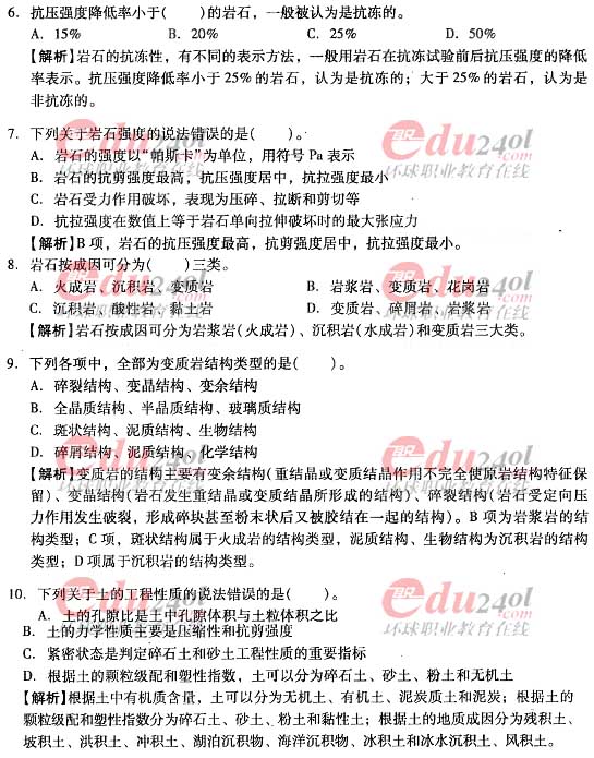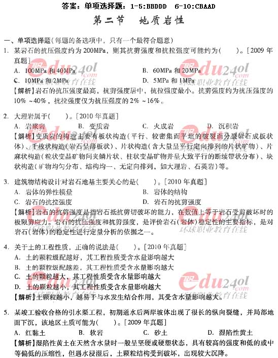 摘要 2012年造價工程師《技術與計量》(土建)過關必做試題及答案(一)主要內容為第一章工程地質第一節工程地址對建設工程的影響;第二節地質巖性;第三節地質構造;第四節巖體特征單項選擇題、多項選擇題以及答案解析。
