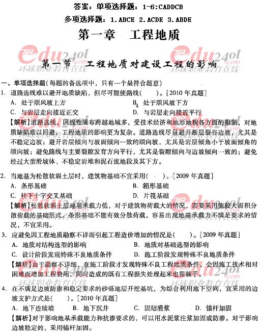 摘要 2012年造價工程師《技術與計量》(土建)過關必做試題及答案(一)主要內容為第一章工程地質第一節工程地址對建設工程的影響;第二節地質巖性;第三節地質構造;第四節巖體特征單項選擇題、多項選擇題以及答案解析。