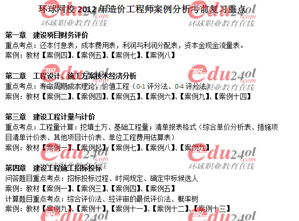 2012年造價(jià)工程師《案例分析》考前復(fù)習(xí)重點(diǎn)