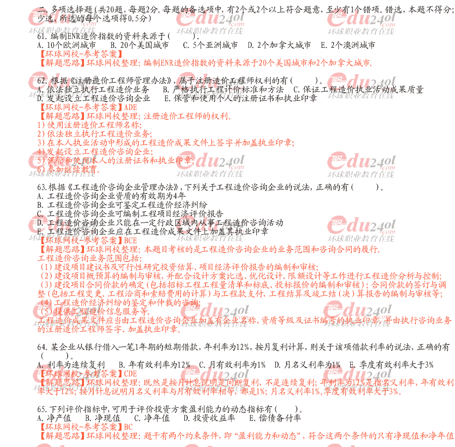 2012年造價工程師考試已經結束,環球網校率先發布了2012年注冊造價工程師考試《理論與相關法規》試題及答案解析,供廣大考生網友參考!2012年造價工程師考試成績預計將于1月前后開始查詢,敬請關注環球網校造價工程師考試頻道!