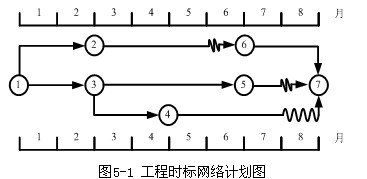某項工程項目施工合同于2006年12月簽訂,合同工期為18個月,合同自2007年1月開始施工,施工單位按合同要求編制了混凝土結構工程施工進度時標網絡圖(圖5-1),并經監理工程師審核批準。