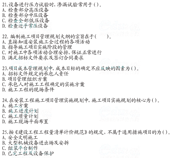 - 2025年一級造價師《安裝計量》真題答案21-30題2025-10-23