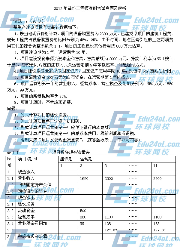 2013造價工程師《案例分析》真題解析