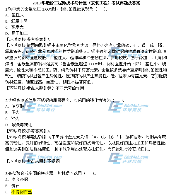 2013造價工程師《安裝工程》真題解析