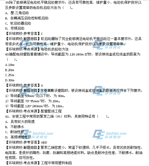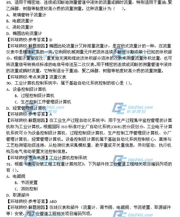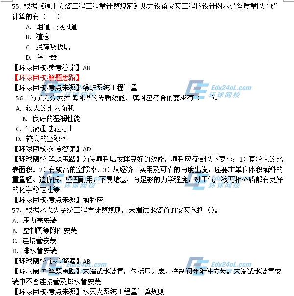 - 2025年一級造價師《安裝計量》真題答案41-50題2025-10-23