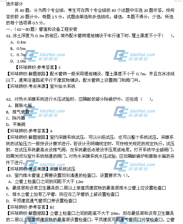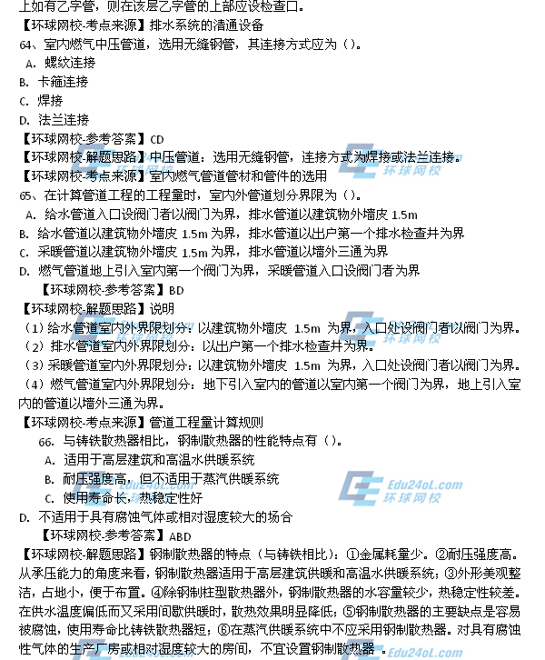 - 2025年一級造價師《安裝計量》真題答案61-70題2025-10-23