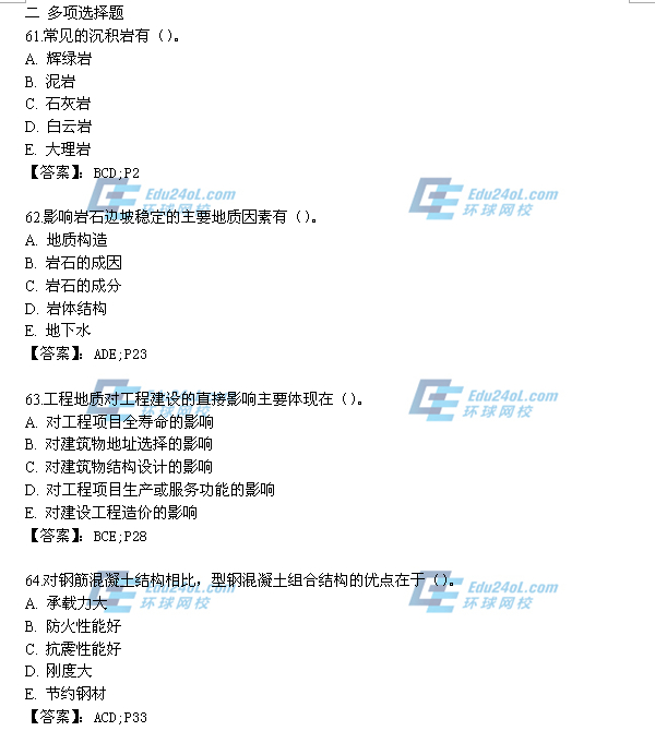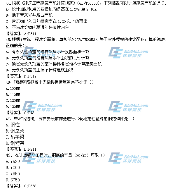 - 2025年一級造價師《土建計量》考試真題答案51-60題2025-10-22