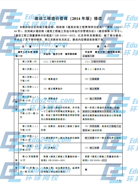 2014年造價(jià)工程師《造價(jià)管理》教材新舊對(duì)比>>教材修改詳細(xì)說明