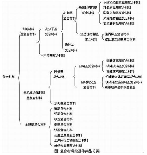 按基體材料類型可分為:有機材料基、無機非金屬材料基和金屬基復合材料三大類,如下圖所示。